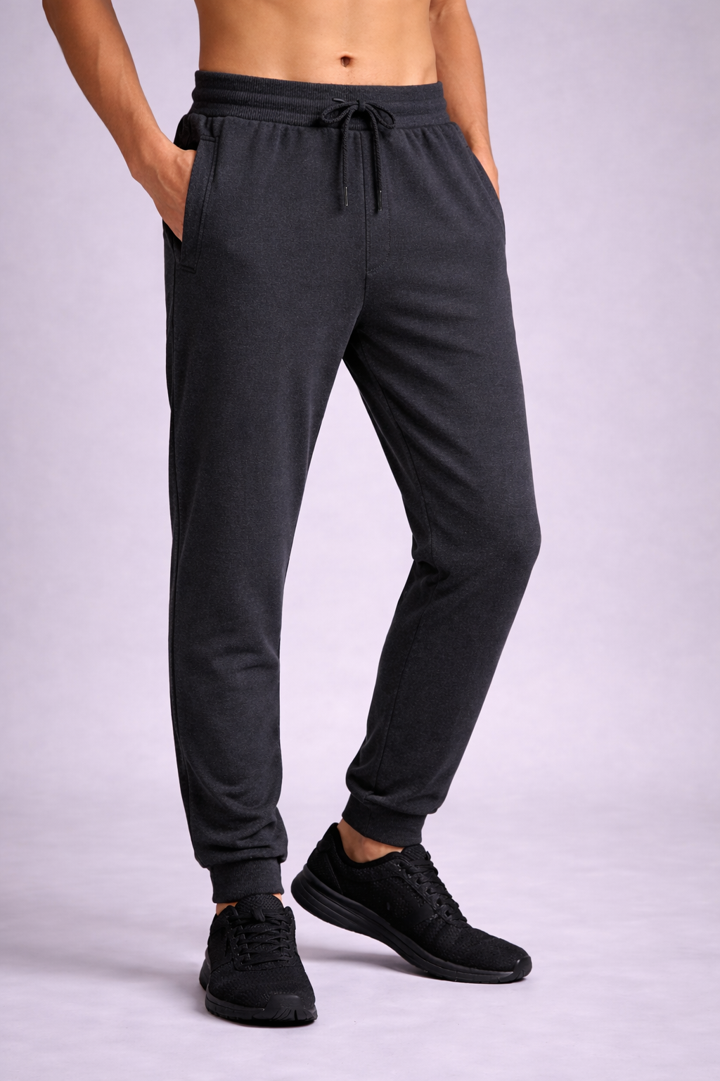 Designed with a structured Derby waistband, the joggers feature a polyester round drawstring with durable plastic tipping for a secure and adjustable fit. The solid, minimal design makes them easy to pair with T-shirts, hoodies, or sweatshirts—ideal for casual outings, travel, and relaxed athleisure looks.