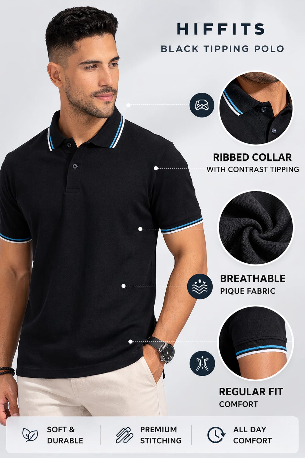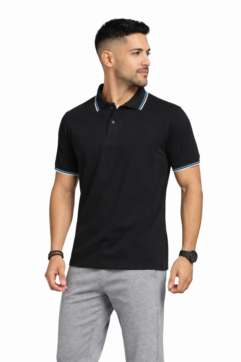 Men’s Black Cotton Polo T-Shirt is crafted from premium soft cotton fabric for superior comfort and breathability. Designed with a contrast tipping collar and a modern fit, this polo is perfect for casual wear, office styling, and everyday use. Stay cool, stylish, and comfortable all day.