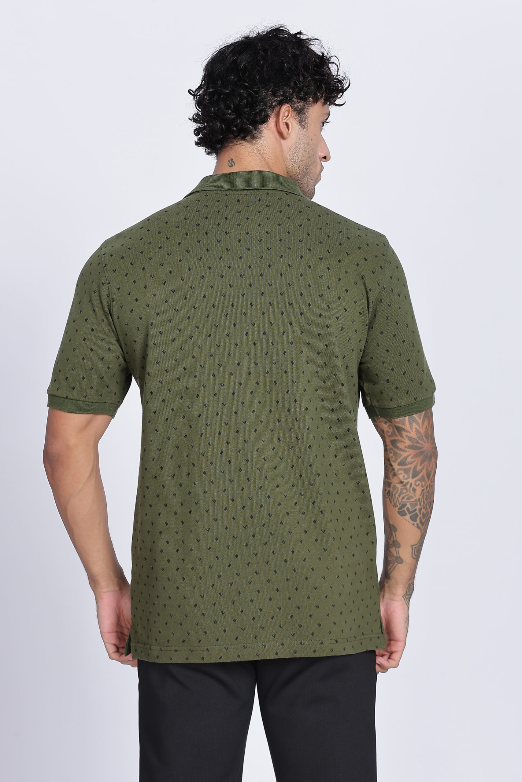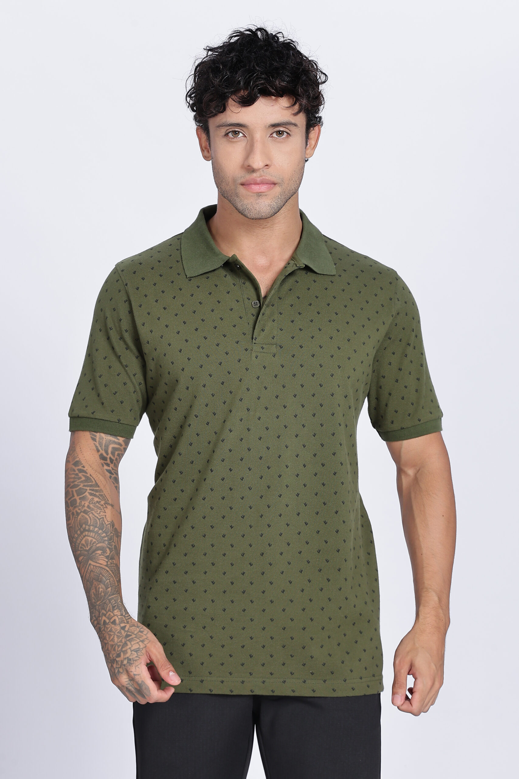REGULAR FIT OLIVE PRINTED POLO